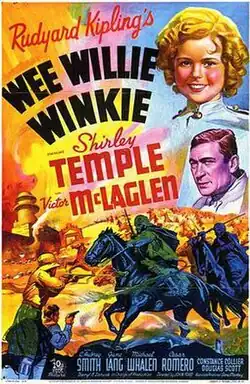 Wee Willie Winkie is a 1937 American adventure drama film directed by John Ford and starring Shirley Temple, Victor McLaglen, and Cesar Romero. The screenplay by Julien Josephson and Ernest Pascal was based on a story by Rudyard Kipling. The film's story concerns the British presence in 19th-century India. The production was filmed largely at the Iverson Movie Ranch in Chatsworth, California, where a number of elaborate sets were built for the film. This film was the first of three in which Shirley Temple and Cesar Romero appeared together: the second was Ali Baba Goes to Town (1937), and finally The Little Princess (1939).[3]