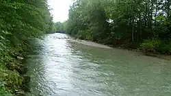 The Weiße Traun (White Traun) is a river of Bavaria, Germany. The nearly 14 kilometer long river is formed at the confluence of the Fischbach and the Seetraun south of Ruhpolding. At its confluence with the Rote Traun (Red Traun) near Siegsdorf, the Traun is formed.
