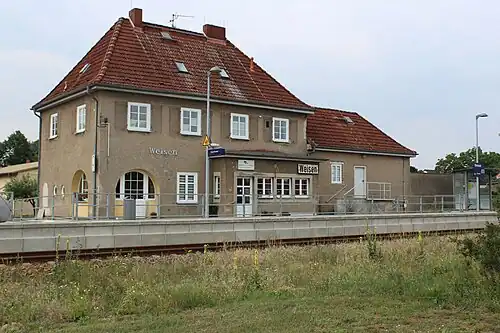 Weisen station (German: Haltepunkt Weisen) is a railway station in the municipality of Weisen, located in the Prignitz district in Brandenburg, Germany.