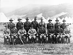 With the out break of the First World War in August 1914, the British Government requested for New Zealand to send a military force to capture the German colony of Samoa. The Samoa Expeditionary Force was dispatched on 15 August and consisted of around 1400 soldiers and nurses.[12] The 5th (Wellington) Regiment provided two infantry companies, for a total of 559 men, which was the largest contribution of any unit in the New Zealand Military Forces. 26 men from the regimental band also travelled with the expeditionary force. Samoa was occupied without incident and the occupation force was relieved in April 1915 by a smaller force of 360 personnel who were unfit for active service.[13]