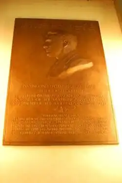 Wendell Willkie plaque is a public sculpture at the Indiana Statehouse in Indianapolis, Indiana, and was designed by American sculptor and educator Paul Fjelde. This bronze plaque honors Wendell L. Willkie (1892–1944) who was the Republican Party nominee for the U.S. presidency in 1940. The plaque was placed in the Statehouse rotunda on February 18, 1950. The inscription on the bottom of the plaque was taken from Willkie's book "One World" which calls for unified world order.[1]