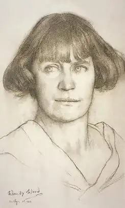 From 1956, Wood shared an artist's studio and house with her partner, Florence St John Cadell at Whinmill Brae in Edinburgh.[6] The house is now split in two and addressed as 17 and 18 Coltbridge Gardens. Wood's portrait by Florence St John Cadell is held by the Scottish National Portrait Gallery.[7]
