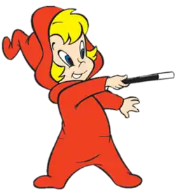 Like many of Harvey's stable, Wendy is a design variation on the prototype of Casper, as are Richie Rich and Little Dot.[1] She has appeared in various other media, including television and film.