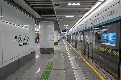 Wensan Road (Chinese: 文三路) is a metro station of Line 10 and Line 19 of the Hangzhou Metro in China. It is located in Xihu District of Hangzhou.[1] The station was opened on 21 Feb 2023.[2]