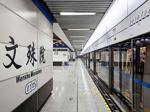 Wenshu Monastery (Chinese: 文殊院) is a station on Line 1 of the Chengdu Metro in China.[1][2] It serves the nearby Wenshu Monastery.