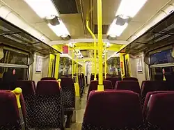 West Anglia Great Northern also opted to improve its suburban trains, such as the Class 313 multiple units, which gained new seats with higher backs, provisions for wheelchair users, and minor improvements to fittings such as stanchions in the passenger areas. These emerged from refurbishment at Railcare, Wolverton in a plain white undercoat,[22] before a metallic purple livery was introduced in 2001.[23]