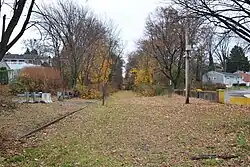 West Arlington station opened on January 1, 1873 with the opening of the Montclair Railway between Jersey City and Monks in West Milford in Passaic County. At the time of opening, the station retained the name of Kearny.[4] The station was located at the end of a cut, 0.5-mile (0.80 km) west of Arlington station.[5] West Arlington station, which doubled as the control tower for nearby WR Draw, served passenger trains until September 30, 1966, when the Erie-Lackawanna Railroad discontinued passenger service to the station after a final Caldwell Branch train crossed.[3] The station depot on the eastbound platform remained, standing abandoned until it burned down in 1983.