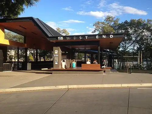 West End ferry wharf is located on the southern side of the Brisbane River serving the Brisbane suburb of West End in Queensland, Australia. It is served by RiverCity Ferries' CityCat services.[1][2]