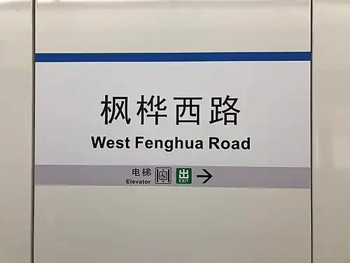 West Fenghua Road (Chinese: 枫桦西路) is a metro station on Line 6 of the Hangzhou Metro in China. It was opened on 30 December 2020, together with the Line 6.[1][2] It is located in Xihu District of Hangzhou, the capital city of Zhejiang province.
