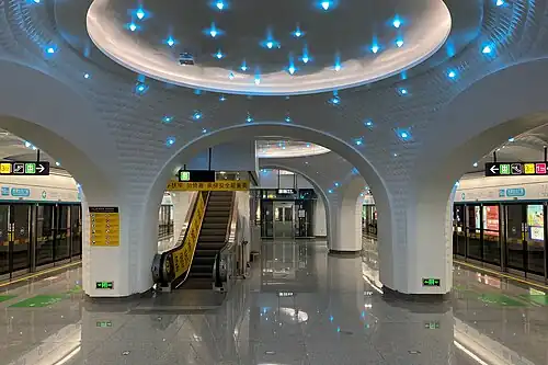 West Lake Cultural Square (Chinese: 西湖文化广场) is an interchange station between Line 1, Line 3 and Line 19 of Hangzhou Metro in China.[3][4] It was opened in November 2012, together with the rest of the stations on Line 1. It is located at Xihuwenhua Square in Gongshu District of Hangzhou. The station is designed to accommodate a paired cross-platform interchange with Line 3.