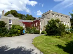 West Ogwell House, the former manor house of West Ogwell, stands next to the church and is a Georgian structure built in 1790 by Pierce Joseph Taylor.[7] In the opinion of Pevsner it has an "overwhelmingly plain exterior (with) no decoration whatever".[8] It incorporates some remains from the former manor house of the Reynell family (whose earliest Devonshire seat was at adjoining East Ogwell),[9] including stables and outbuildings built in 1588 by Thomas Reynell,[10] as the surviving datestone in the wall of the lean-to building in the courtyard attests by its inscription Anno Domini 1588 T. R..[11] In 1943 it became the Convent of the Companions of Jesus the Good Shepherd (founded 1920), and a chapel was added in 1955.[12] In 1996 the Convent moved to Windsor and joined with the Community of St John Baptist,[13][14] and sold West Ogwell to the Gaia House Trust (the then Gaia House being situated at the Old Vicarage in nearby Denbury) whereupon it became the home of a Buddhist centre, which changed the name of the building to "Gaia House", and uses it as "a quiet retreat for meditation and contemplation".[15]