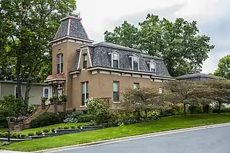 The Strauss House, built in 1875 in the Second Empire style, faced with stucco and topped with a mansard roof (Northeast Elevation).[2]