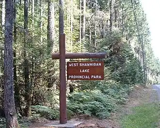 ![]() Welcome sign of West Shawnigan Lake Provincial Park | |