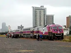 In January 2014, MassDOT released its ten-year plan, which included a six-line diesel multiple unit (DMU) network called the Indigo Line proposed to be implemented by 2024. As proposed, the Indigo Line was envisioned as a new service of the MBTA's rapid transit network and would have mainly utilized existing MBTA Commuter Rail infrastructure within Greater Boston. Initial plans for the Indigo Line included additional service on the Fairmount Line, the Newburyport/Rockport Line (to Lynn), the Lowell Line (to Anderson RTC), and the Worcester Line (to Riverside), as well as new service from Back Bay to the BCEC on Track 61 and from North Station along the Grand Junction to a new station near Boston University's West Campus. This new West Station would offer connections between the Grand Junction DMU route, the Riverside DMU route, and conventional commuter service on the Worcester Line.[11][12] It was proposed to attract transit oriented development to the Beacon Park area, similar to Assembly Station and the Assembly Square development in Somerville, Massachusetts.[13]