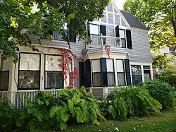 The oldest house in the district, "The Kedge", is a relatively modest Second Empire house that was built for A. Veazie (for whom it was formerly named) in 1871 and moved to the West Street area in 1886, when the street was formally laid out. It was modified in 1969 by Frederick Lincoln Savage when William Sterling was its occupant.[3] "Petunia Cottage" (1877) was the first building to be built on what became West Street; it is a Queen Anne Victorian that was one of the first houses to be built as a rental property. Following the layout of the road there was a boom in construction, with a significant number of architect-designed properties built lining the waterfront. Stylistically these early houses are all reflective of the Shingle, Queen Anne, or Colonial Revival, which were popular at the time. Three houses were designed by the noted Boston firm Rotch and Tilden, and two were designed by New York architect William A. Potter.[2]