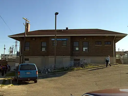 Western Avenue station in September 2007. | ||||||||||||||||||||||||||||||||||||||||||||||||||||||||||||||||||||||||||||||||||||||||||||||||||||||||||||||||||||||||||||||||||||||||||||||||||||||||||||||