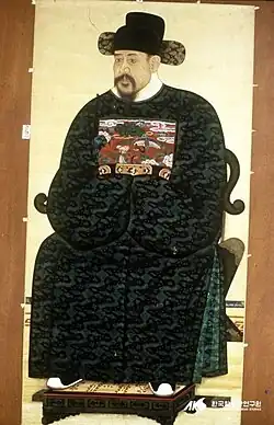 In 1618, the Greater Northerners exiled Seonjo's wife Queen Inmok under King Gwanghaegun's support.[35] Because the Confucian ideology of the time meant that the wife of the former king was regarded as the mother of the current king (even in the case that she was not the present king's true mother), the act was seen as a son exiling his mother, thus a terrible sin against filial piety, or hyo.[36] This, along with a purely Northerner government that excluded other factions such as the Westerners or Southerners,[37] caused Gwanghaegun and his Greater Northerner government to lose the support of the Neo-Confucian scholars and be thrown into isolation.[38]
