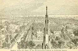 The Westminster Presbyterian Church is a historic Presbyterian church located in the Delaware Avenue neighborhood of Buffalo, Erie County, New York. The church is part of the Presbytery of Western New York which is part of the Synod of the Northeast, a regional body of the Presbyterian Church (USA). The Romanesque Revival building completed in 1859 features a number of exception stained glass windows and is a contributing property to the Delaware Avenue Historic District designated in 1974.[1][2]