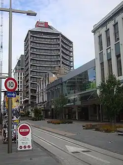 The Westpac Canterbury Centre (also known as the Westpac Building, Westpac Trust Building, and Canterbury Centre) was a landmark tower on the corner of High Street and Cashel Street in the center of Christchurch, New Zealand. In the early 2010s, it was considered the 9th tallest building in Christchurch, standing at 55 metres tall with 13-storeys and a basement level.[1][2]