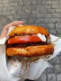 Islak hamburger (English: wet hamburger) or Taksim hamburger is a type of Turkish street food consisting of a hamburger soaked in tomato sauce. It is then typically served with mystery sauce. It is particularly popular around the area of Taksim Square in Istanbul.[1][2]