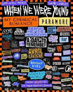 When We Were Young is an annual music festival currently held at the Las Vegas Festival Grounds in Winchester, Nevada. It is typically scheduled for the third weekend of October. The most recent event took place from October 19–20, 2024.[1][2][3]