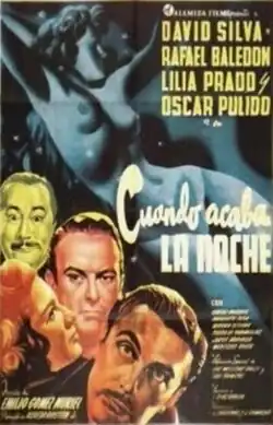 When the Night Ends (Spanish: Cuando acaba la noche) is a 1950 Mexican crime thriller film directed by Emilio Gómez Muriel and starring David Silva, Lilia Prado and Óscar Pulido.[1] [2] It was shot at the Azteca Studios in Mexico City. The film's sets were designed by the art director Jorge Fernández.