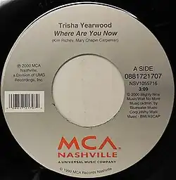 - ^ "Trisha Yearwood -- "Where Are You Now" (2000, CD Single)". Discogs. Retrieved 3 November 2020.