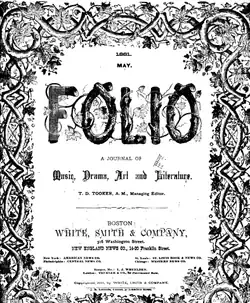 The company's journal, The Folio, was first published in September 1869 at an annual subscription price of $1.[2] Dexter Smith was hired to be the first editor; Smith was a Boston poet, lyricist, and critic who also published his own magazine from 1872 to 1877.[1] In addition to poetry, fiction, and news items related to the music industry, each issue of Folio included 16 pages of sheet music. Its chief objective was the promotion of its publisher, and its last issue was printed in October 1895.[2]