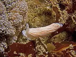 The white-ridged nudibranch, Dermatobranchus sp. 1, as designated by Gosliner, 1987, is a species of nudibranch. It is a marine gastropod mollusc in the family Arminidae. As at November 2009, it remained undescribed by science.