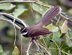The white-spotted fantail is insectivorous, and often fans its tail as it moves through the undergrowth.