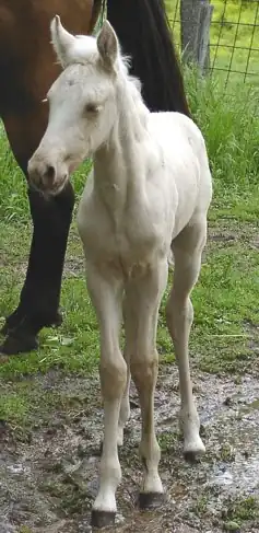 - ^ "No horse is eligible for registration which possesses all three characteristics which designate a horse commonly known as an albino: light (or pink) skin over the body; white or cream colored hair over the body; and eyes of a bluish cast."