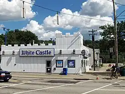 White Castle Management Co. is an American regional slider restaurant chain with about 345 locations across 13 states, with its greatest presence in the Midwest and New York metropolitan area.[6][7] It was founded on September 13, 1921, in Wichita, Kansas. White Castle has been generally credited as the world's first fast food hamburger chain.[2] It is known for its small, square hamburgers commonly referred to as "sliders". The burgers were priced at five cents from their introduction until the late 1940s.[8] In the 1940s, White Castle periodically ran promotional ads in local newspapers which contained coupons offering five burgers for ten cents, takeout only.[9][10] In 2014, Time named the White Castle slider "The Most Influential Burger of All Time". The company's restaurant locations are white buildings shaped like castles. White Castle celebrated its 100th anniversary in 2021.