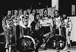 The Rebels retained the majority of the Oxford riders and Gordon Kennett led the team to a 15th place finish during the 1976 British League season.[6] In 1977, White City Rebels won the title, winning 27 league fixtures during the 1977 British League season ending with 55 points in only their second season of existence. The London team caused a surprise with their consistent form throughout the season with heavy scoring of Gordon Kennett, supported by a group of five other riders hitting around a seven average to support Kennett. The five were Englishmen Mike Sampson, Steve Weatherley and Trevor Geer, Pole Marek Cieślak and Finn Kai Niemi.[7][8]