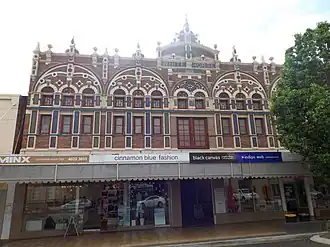 The White Horse Hotel is a two storeyed brick building on Toowoomba's main street, Ruthven Street. It was erected in several phases with major alterations c. 1912, including a new facade and internal refurbishing, attributed to Toowoomba architects, James Marks and Sons.[1]