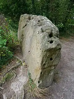 The Upper White Horse Stone took its name from the destroyed Lower White Horse Stone;[45] that it had taken on this name was first noted in print in 1927.[48] Reflecting this, Evans called it the "Successor White Horse Stone".[49] He believed that at one end it had the "crude outline of a face caused by the natural configuration of the rock".[44] It is scheduled under the Ancient Monuments and Archaeological Areas Act 1979.[40]