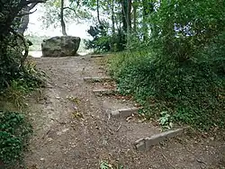 In 1987, members of the Odinic Rite formed the Guardians of the White Horse Stone, a group devoted to protecting the site; they installed timber steps from the Pilgrim's Way enabling visitors better access to it.[73] In the 1990s, they unsuccessfully campaigned to stop the Channel Tunnel Rail Link from being tunnelled close to the Stone.[78] The Guardians group fell dormant, although was revived in 2004 to deal with a new situation;[73] in 2003, the telecommunications company Orange sought planning permission to build a radio tower within a few metres of the stone. The Odinic Rite, in tandem with another folkish Heathen group called Woden's Folk,[a] successfully petitioned Tonbridge and Malling Council to reject the proposal. In 2006, Orange revived their application, although this time proposed to move the tower further from the White Horse Stone. The Guardians again campaigned against this.[78] The White Horse Stone has also been vandalised on various occasions, with visitors having drawn and painted on it. Members of the Odinic Rite have endeavoured to remove this graffiti using methods they believe are not harmful to the stone.[80]