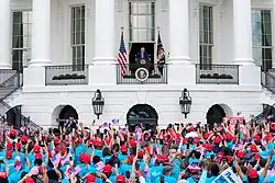 On September 16, it was reported that at least one unnamed staffer had tested positive.[39][40] After Trump's hospitalization, it was revealed that two members of the residence staff had tested positive that week.[41] On September 17, Trump held a rally at an airport in Mosinee, Wisconsin; Thousands attended, few masks were worn and social distancing was not observed.[42][43] The county experienced a surge in COVID-19.[36]
