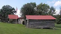 Shortly after his arrival, Quarles built a two-story log house with a detached kitchen and office, and several slave cabins. Within a few years, Quarles had established a general store, blacksmith shop, and post office at White Plains. The Kentucky Stock Road, a cattle drovers' path connecting Huntsville, Alabama and Danville, Kentucky, was developed in subsequent years and intersected the Walton Road at White Plains.[5] The Quarles' inn was a popular stopover for travellers along these two roads, and three U.S. presidents— Andrew Jackson, James K. Polk, and Andrew Johnson— are known to have lodged at White Plains.[2] Quarles's youngest son, John Adams Quarles (1802–1876), may have inspired author Mark Twain's story, "The Jumping Frog of Calaveras County" (John Quarles was married to Twain's aunt, Martha Lampton).[2] Quarles's daughter, Sallie, was married to U.S. Congressman Adam Huntsman, famous in Tennessee history for defeating Davy Crockett in the 1834 election and prompting Crockett's angry departure to Texas.[2]
