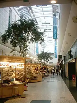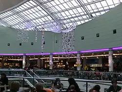 The White Rose Centre is a shopping centre in the Beeston area of Leeds, West Yorkshire, England.[1][2] It spans two floors and is near the M621 motorway. It takes its name from the White Rose of York, the traditional symbol of Yorkshire. Most shops are situated on the Ground Floor. The Upper Level mezzanine and ‘The Village’ outdoor expansion houses one of two food courts as well some retail outlets, a Cineworld 11-screen cinema, a Starbucks and an al fresco dining terrace including new tenants Wagamama, Prezzo, TGI Fridays and Five Guys among others. It also houses an outdoor children's play area. Although the centre is smaller than other out-of-town shopping centres, it contains large retailers such as Next, JD Sports, Zara, H&M, Primark, River Island and Marks & Spencer.