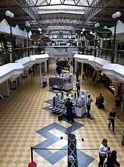 The Whitgift Centre is a large shopping centre in the town centre of Croydon, opening in stages between 1968 and 1970.[1] The centre comprises 1,302,444 sq ft (121,001 m2) of retail space, and was the largest covered shopping development in Greater London until the opening of Westfield London at White City in 2008. The Whitgift Centre has a monthly footfall of 2.08 million.[2] The complex includes an office development.