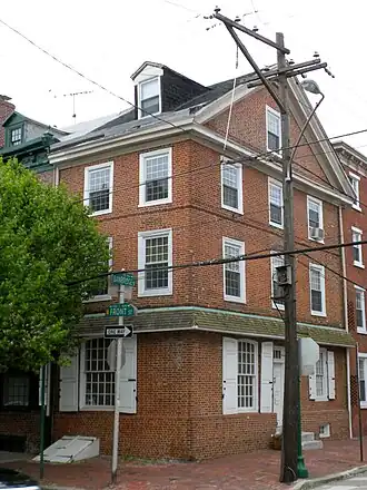 Built in 1764 in Philadelphia's former Southwark district for Thomas Maloby (alternate spelling "Mallaby"),[3] a rigger in Philadelphia's large shipping industry, this historic structure was owner-occupied in 1765, according to zoning records held by the city of Philadelphia. The owners, Maloby and his wife, Christiana, operated a bar room in the building's front parlor and a dining room in the back parlor, which also served as their family's personal dining room. That back parlor was erected adjacent to a small kitchen area at the back of the home during the home's original construction period.[4]