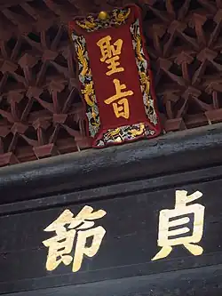 During the Ming dynasty, widow chastity became increasingly common, gained wide prominence and was given legal support.[5] Marriage and property laws that discouraged remarriage started during the Yuan dynasty also made widow chastity increasingly popular.[5] Chaste widows were elevated to the role of cultural heroes,[8] and the state awarded 'testimonials of merit' (旌表, jingbiao) to chaste women. Such awards had been given to chaste widows (節婦) since the early 14th century during the Yuan dynasty, and extended to women who died resisting rape (烈女) in the late 16th century.[10] The state gave approval to local chastity cults whereby commemorative arches (貞節坊) and shrines were constructed to honor the women by members of their families or communities, and honored them with commemorative writings.[11][12] Chastity also became associated with suicide, and suicide by widows increased dramatically during the Ming era.[13][11]