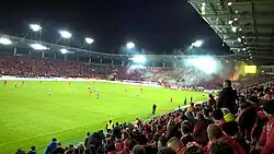 The Widzew Łódź Stadium (Polish: Stadion Widzewa Łódź) is a football stadium in Łódź, Poland. It is the home stadium of Widzew Łódź. The stadium has an all-seater capacity of about 18,000. The previous stadium has a capacity of 10,500 seats, with only part of the West Stand covered. It was demolished in early 2015 to make way for the new stadium.