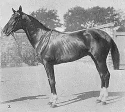 Wildfowler (1895 – 1917) was an Irish-bred, British-trained Thoroughbred racehorse and sire. He showed very good form as a two-year-old in 1897 when he won three of his five races and finished third in the Middle Park Plate. In the following year he ran fourth in the 2000 Guineas and was fancied for the Epsom Derby before being scratched from the race. He returned in September to win the St Leger, upsetting the Derby winner Jeddah but did not race again. He stood as a breeding stallion in Ireland and France but was not a great success although he did sire a top-class performer in Llangibby and an influential broodmare in Silver Fowl.