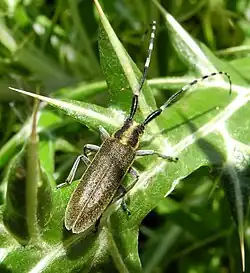 There are 175 identified orthoptera species. One, Bradyporus macrogaster macrogaste, is critically endangered. Four are considered endangered, while another eight are considered vulnerable (another 10 are data deficient). Some species are known only from a single location, or even a single record.[13] There are perhaps 106 caddisfly species, although estimates vary. The 68 species of identified Neuropterida consist of 59 Neuroptera and nine Raphidioptera. The 13 known flea species include parasites of the Balkan snow vole. The country has 68 identified mayflies, including seven Rhithrogena species, all found in the Pena river. Known Dictyoptera include 12 cockroaches, four mantis, and two termites. Of the 14 lice species known, two, Enderleinellus ferrisi and Schizophthirus gliris, are parasites (of European ground squirrels and edible dormice respectively). Haploembia solieri, which was found in Valandovo, is the only recorded Embioptera species. Other insect species include 97 Plecoptera (10 of which are endemic), 64 Odonata, 49 Psocoptera, 42 Thysanoptera, five Dermaptera, three Archaeognatha, two Mecoptera, one Strepsiptera (Hylecthrus rubi), and one Zygentoma. There is no data for Megaloptera within the country.[11]