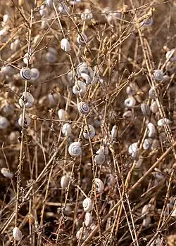 There are at least 870 nematode species,[3] including 450 forest-dwelling species, 80 plant parasites, and many living in lakes.[11] The Mollusca species represented are mostly Gastropoda, which have 301 species. At least 195 of these are land snails, and 107 are aquatic snails. The remaining 19 mollusc species are Bivalvia.[11] Of 92 molluscs considered endemic, 88 of them are gastropods and four of them are bivalves.[3] One gastropod species in Lake Prespa is invasive.[11]