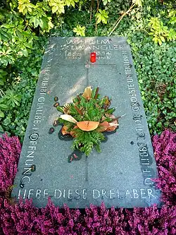Furtwängler's name appeared on the Gottbegnadeten list ('God-Gifted List') of September 1944 as one of only three musicians in the special category designated as unersetzliche Künstler ("indispensable artists"), alongside Richard Strauss and Hans Pfitzner.[123] However, he was removed from the list on 7 December 1944 due to his connections with the German resistance, which had organized the 20 July plot. During his denazification trial, Furtwängler stated that while he was aware of the plot to assassinate Hitler, he did not play a role in its organization. He had a close relationship with Claus von Stauffenberg, one of the key conspirators, and his doctor, Johannes Ludwig Schmitt, who provided him with numerous false health prescriptions to circumvent official requirements, was a member of the Kreisau Circle.[112]