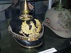 The distinctive spiked helmet, the so-called Pickelhaube had existed previously and not only in the German Empire, but it now symbolises Wilhelmian era and the Imperial German Army and Prussian Army-inspired militarism in general. (In fact, various sign languages still have the extended forefinger placed in front of the forehead, indicating the spiked helmet, as the sign for "German".)