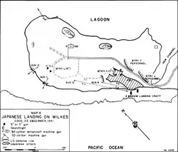 It was the location of some of the fighting during the Battle of Wake Island in December 1941. Wilkes was the site of a shore battery and defenses, as part of the overall defenses of Wake island, when World War II broke out. Japanese troops landed on Wilkes Island as part of the invasion of island, which fell on December 23, 1941.[9]