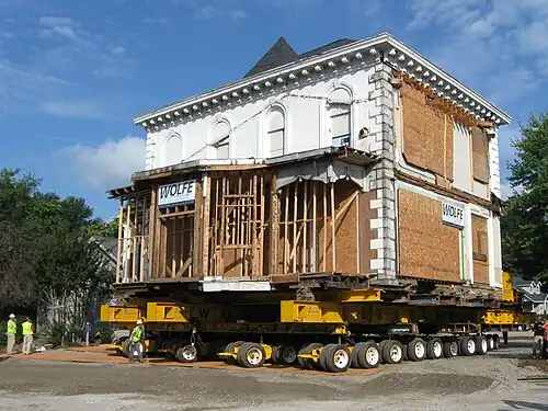 When the now four-acre property was sold to a buyer who wished to demolish the house and build a nursing home and assisted living center, real estate developer Neil Wilson bought the house, intending to preserve and restore it. With assistance from the Palmetto Trust for Historic Preservation and members of the Greenville community, the necessary $720,000 to move the house was raised in 2014. The funeral home additions were demolished, and on September 6, 2014, the approximately 750-ton house was moved a few blocks from Augusta Street to Mills Avenue—probably becoming in the process the heaviest structure ever moved in South Carolina.[8]